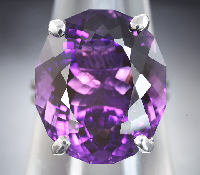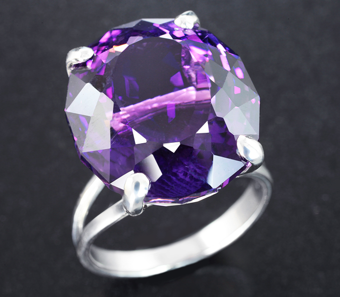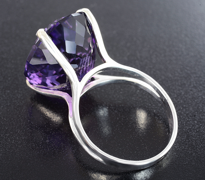 Серебряное кольцо с крупным аметистом эффектной огранки 19,93 карата