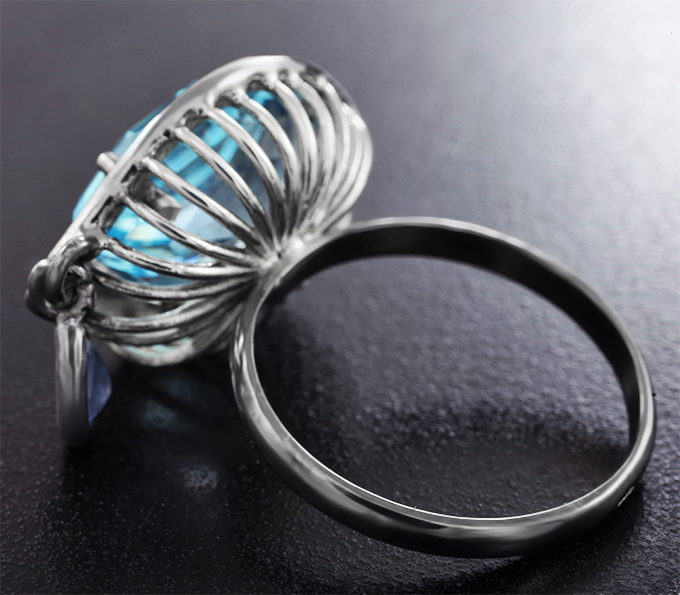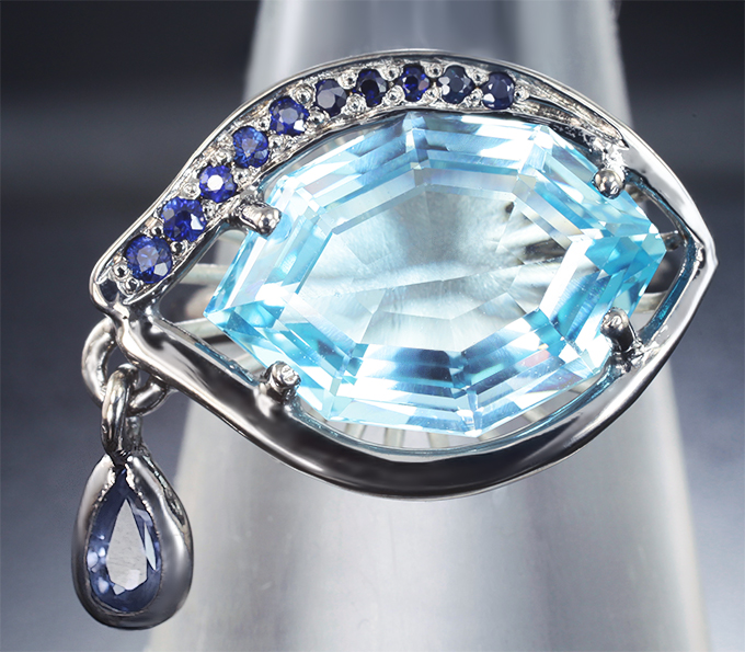 Кольцо с топазом авторской огранки «Mordor Eye» 8,1 карата, голубым и синими сапфирами
