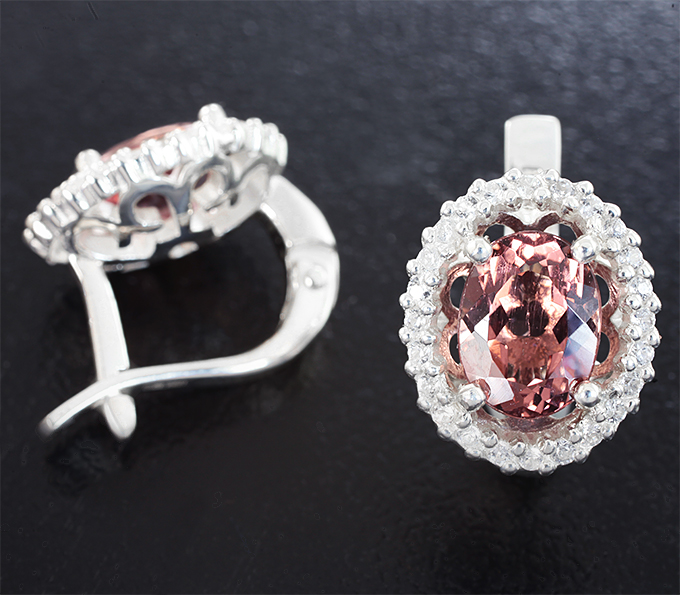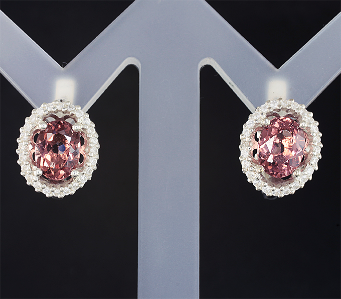 Серьги с апатитами падпараджа 2,6 карата и цирконами