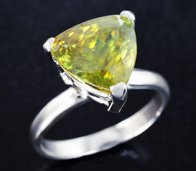 Кольцо c крупным желто-зеленым сфеном 4,14 карата