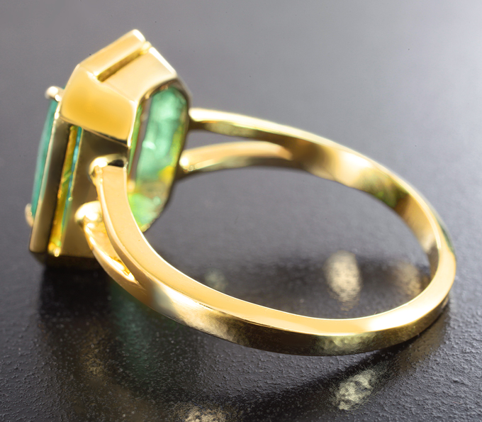 Вашему вниманию предлагается кольцо из желтого золота 585 пробы c уральским изумрудом и цаворитами гранатами! Диаметр дополнительной инкрустации 1,1 мм. Площадка 15 х 12 мм, высота 7 мм. Вес изделия 5,03 г. Размер 19,5. Ниже приводятся ювелирные характеристики вставки.