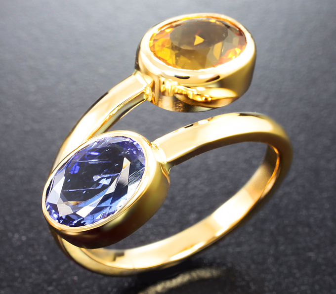 Кольцо с танзанитом 2,32 карата и гелиодором 2,29 карата