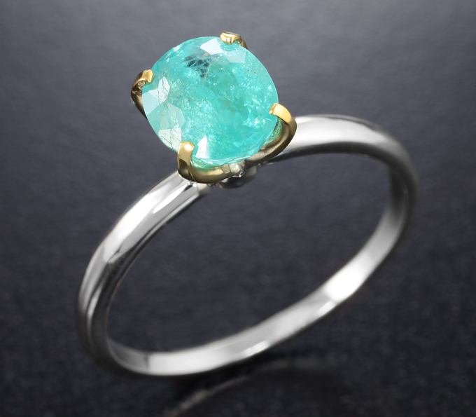 Вашему вниманию предлагается кольцо из стерлингового серебра (925 проба) c параиба турмалином! Изделие частично позолочено. Площадка 7 х 6 мм, высота 8 мм. Вес изделия 1,74 г. Размер 17,5. Ниже приводятся ювелирные характеристики.