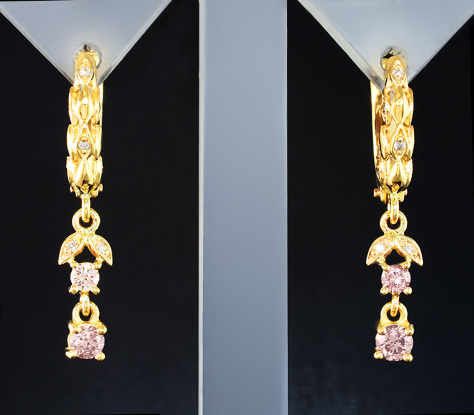 Серьги с розовыми 0,43 карата и бесцветными бриллиантами