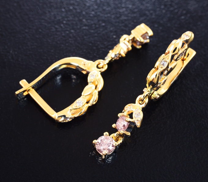 Вашему вниманию предлагаются серьги из желтого золота 558 пробы с розовыми 0,43 карата и бесцветными бриллиантами! Диаметр вставок 1,1 мм и 3 мм. Размеры серег с петлей 28 х 3 мм. Вес пары 3,12 г.