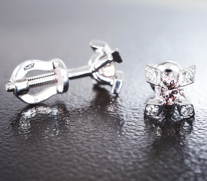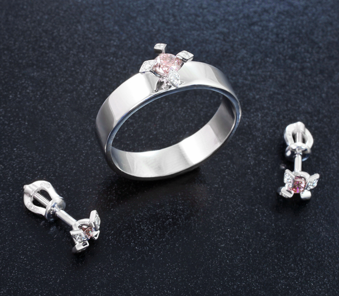 Комплект с розовыми 0,36 карата и бесцветными бриллиантами
