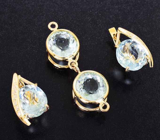 Комплект с аквамаринами 18,01 карата и бесцветными цирконами