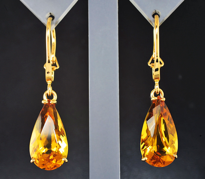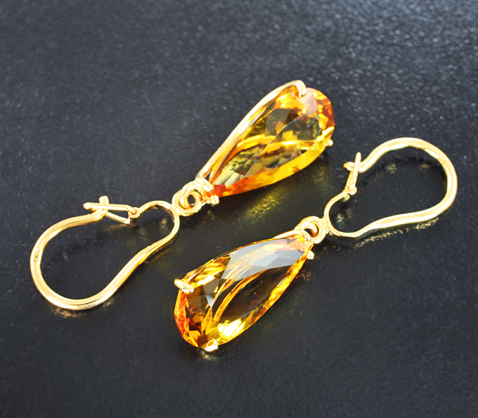 Вашему вниманию предлагаются серьги из желтого золота 585 пробы с гелиодорами! Размеры серег с петлей 40 х 10 мм. Вес пары 4,93 г. Ниже приводятся ювелирные характеристики вставок.