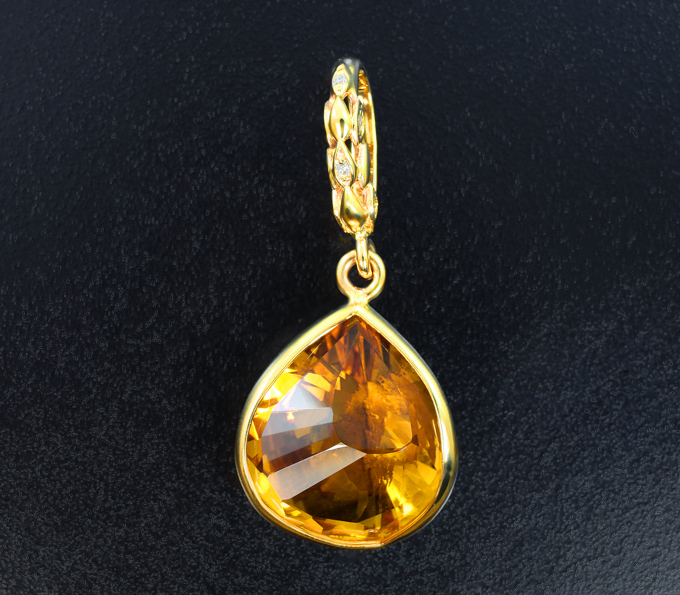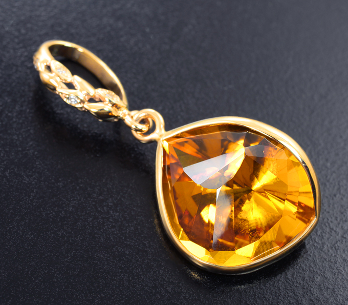 Кулон с гелиодором авторской огранки 11,54 карата и бриллиантами