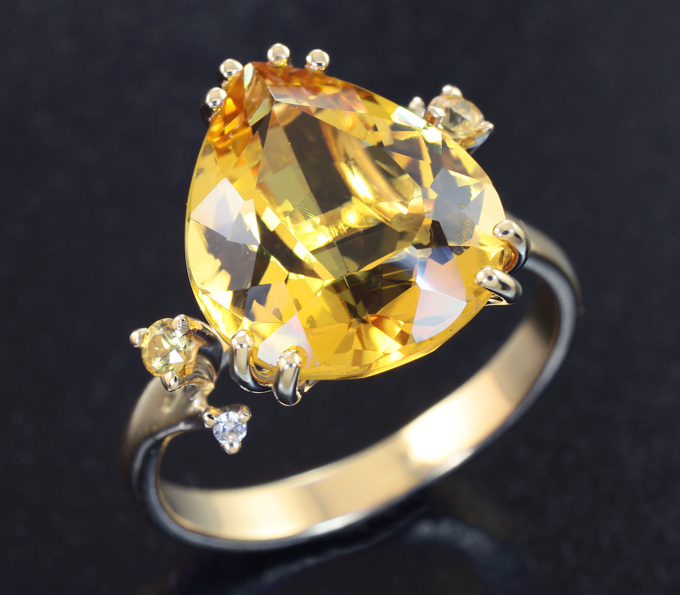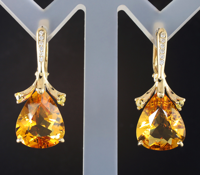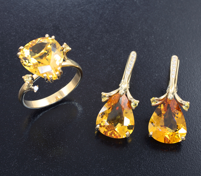 Комплект с гелиодорами 15,84 карата, бесцветными и желтыми сапфирами