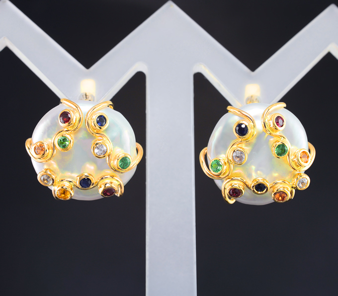 Комплект с жемчугом барокко 35,89 карата, цаворитами и разноцветными сапфирами