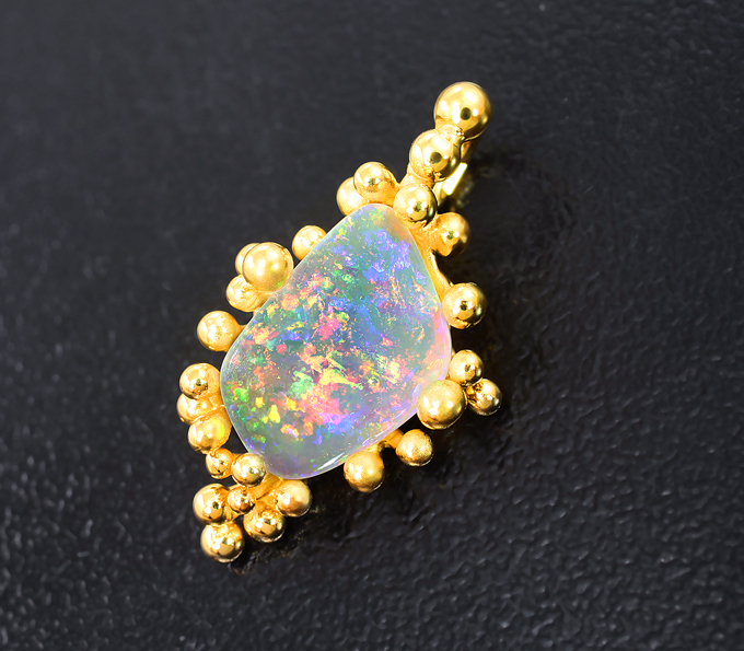 Вашему вниманию предлагается кулон из стерлингового серебра (925 проба) с австралийским solid опалом! Изделие частично позолочено. Площадка кулона 23 х 13 мм. Вес изделия 1,84 г. Основные цвета опалесценции: красный, желтый, зеленый, синий и фиолетовый. Ниже приводятся ювелирные характеристики.