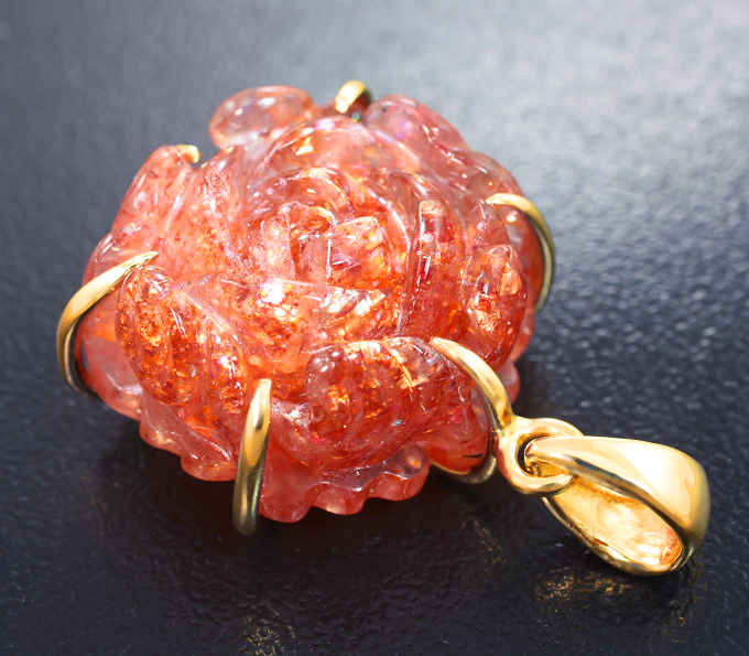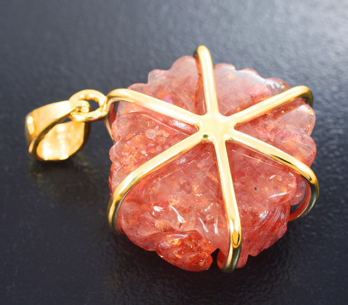 Кулон с резным солнечным камнем 28,41 карата