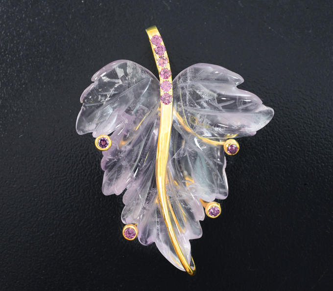 Кулон с резным аметистом 39,85 карата и родолитами гранатами