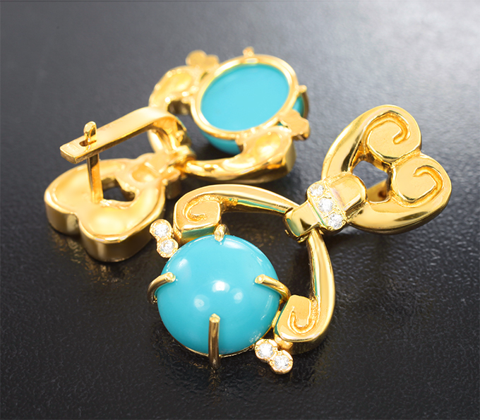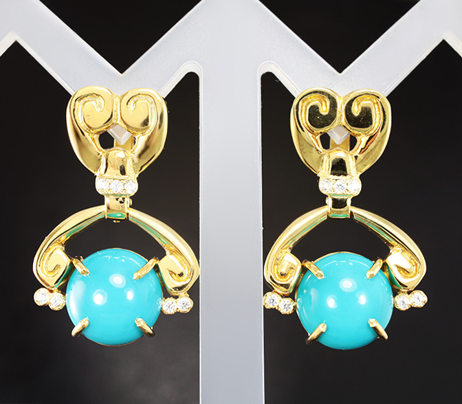 Серьги с кабошонами армянской бирюзы 11,42 карата и цирконами