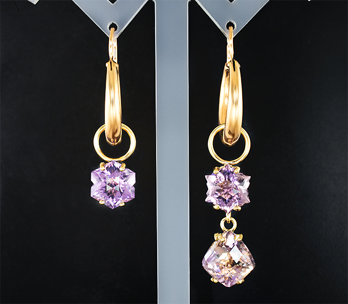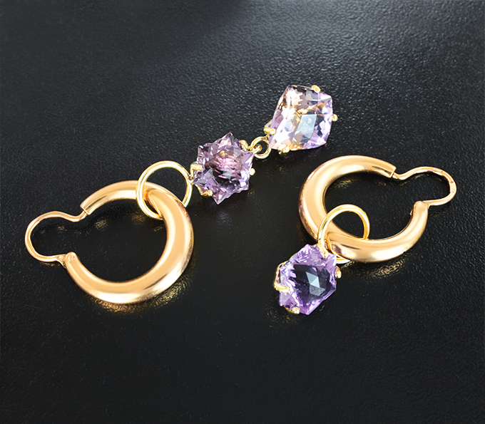 Подвесы для серег с аметринами и аметистом авторской огранки