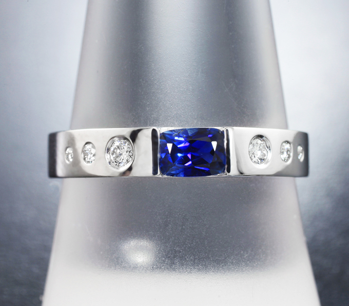 Вашему вниманию предлагается кольцо из белого золота 595 пробы c цейлонским синим сапфиром и бриллиантами! Диаметр дополнительной инкрустации 1,1 мм и 2 мм. Ширина площадки 4 мм, высота 3 мм. Вес изделия 2,73 г. Размер 18,5. Ниже приводятся ювелирные характеристики сапфира.