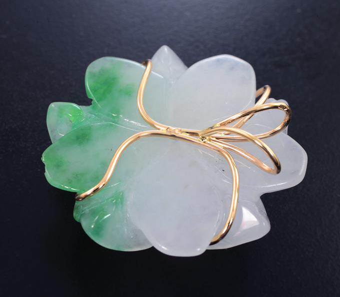 Кулон с резным полихромным нефритом и желтыми сапфирами