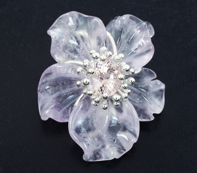 Вашему вниманию предлагается кулон из стерлингового серебра (925 проба) с резным аметистом и морганитом! Размеры морганита 8 х 6 мм. Площадка кулона 35 х 30 мм. Вес изделия 11,22 г. Ниже приводятся ювелирные характеристики вставки.