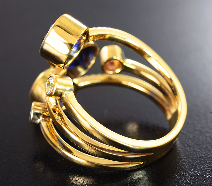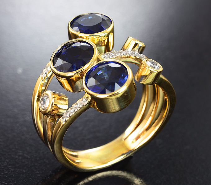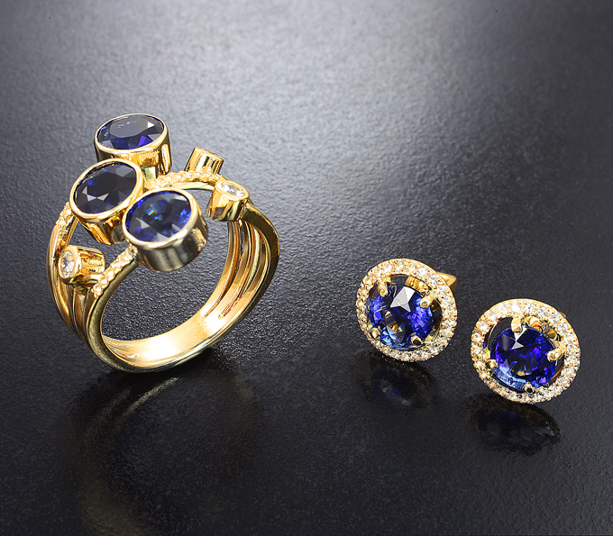 Вашему вниманию предлагается комплект (кольцо + пусеты) из желтого золота 585 пробы с кианитами 8,77 карата и бесцветными цирконами! Диаметр вставок 0,9 мм до 7 мм. Вес комплекта 12,16 г.