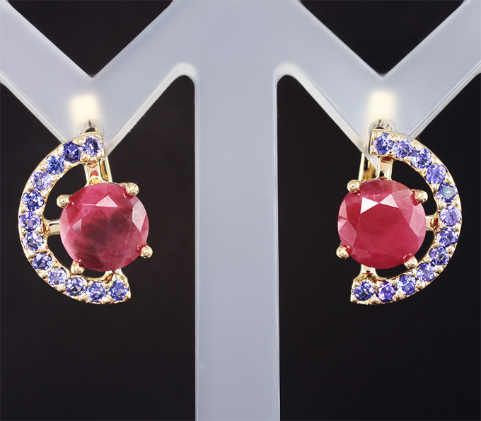 Вашему вниманию предлагаются серьги из желтого золота 585 пробы с родонитами и сапфирами с фиолетовым оттенком! Диаметр дополнительной инкрустации 2 мм. Площадка серег 16 х 12 мм. Вес пары 5,91 г. Ниже приводятся ювелирные характеристики родонитов.
