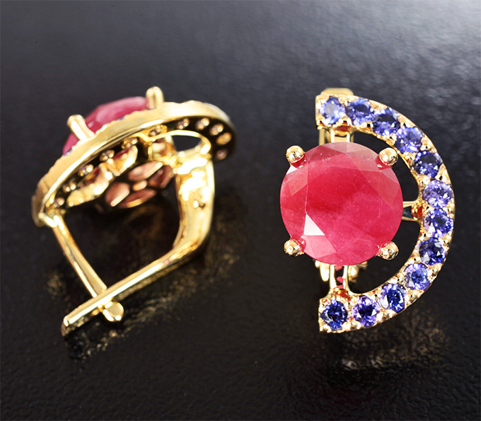Серьги с родонитами 5,3 карата и сапфирами с фиолетовым оттенком