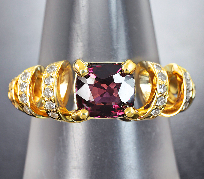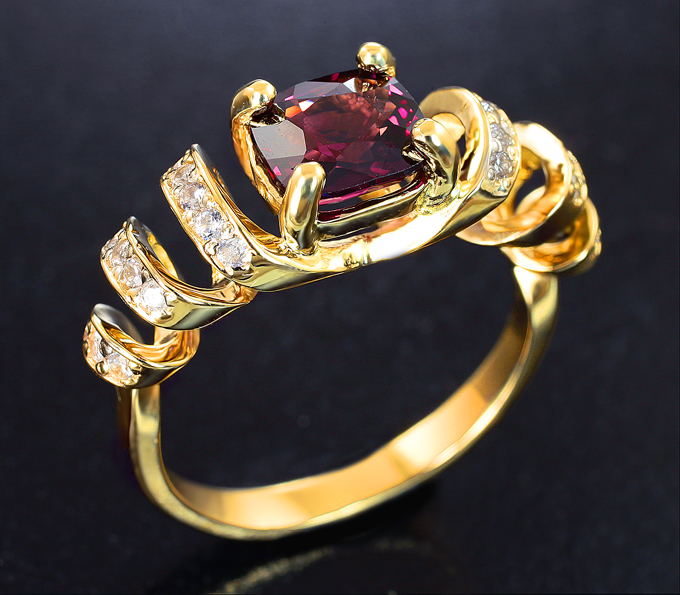 Кольцо с красной шпинелью 1,25 карата и бесцветными цирконами