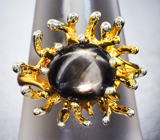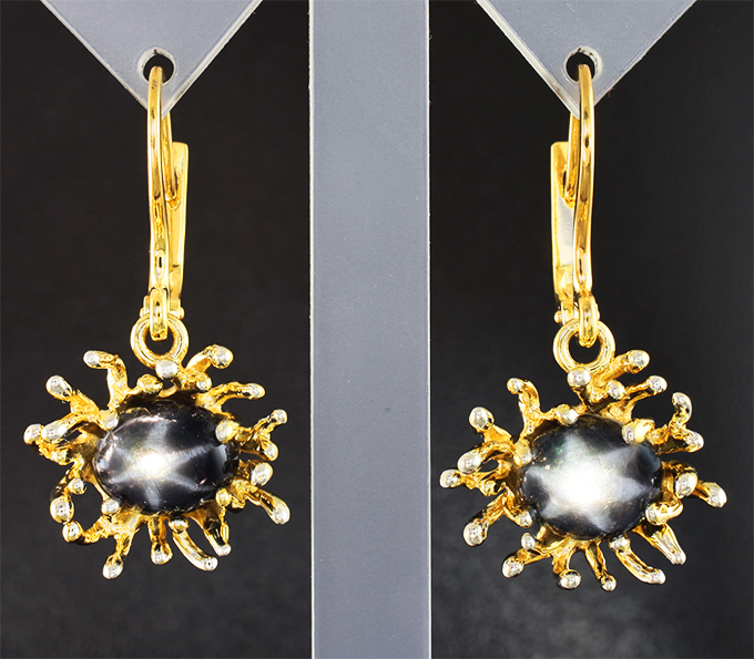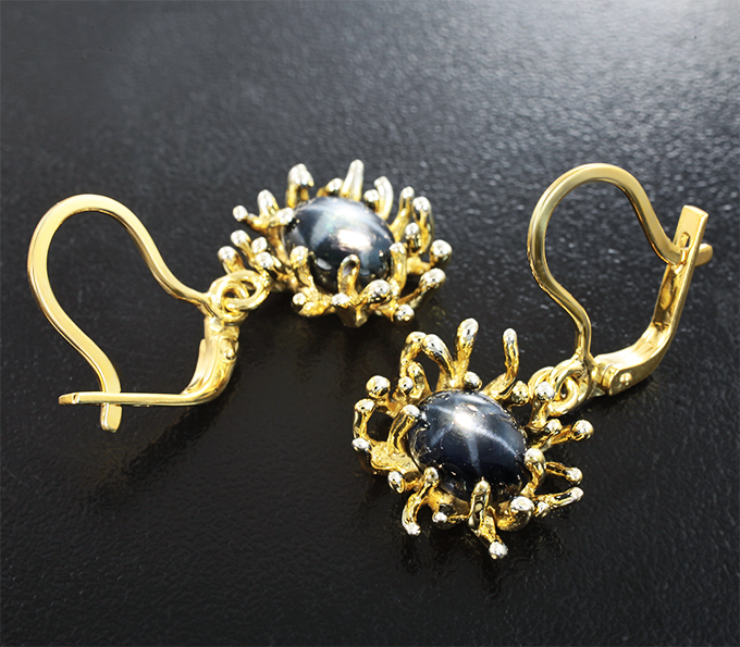 Вашему вниманию предлагается комплект (кольцо + серьги) из стерлингового серебра (925 проба) со звездчатыми сапфирами! Изделия частично позолочены. Размеры вставок 10 х 9 мм. Вес комплекта 12,27 г.