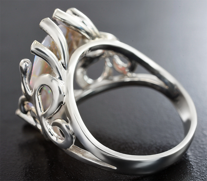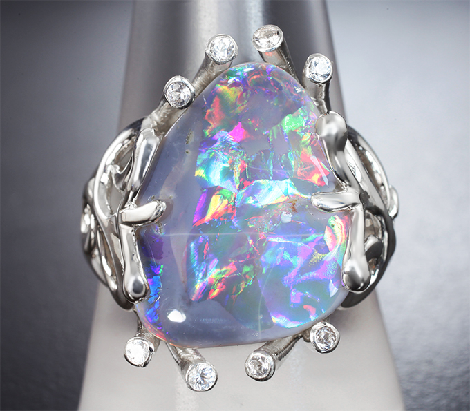Кольцо с австралийским solid опалом 4,25 карата и лейкосапфирами