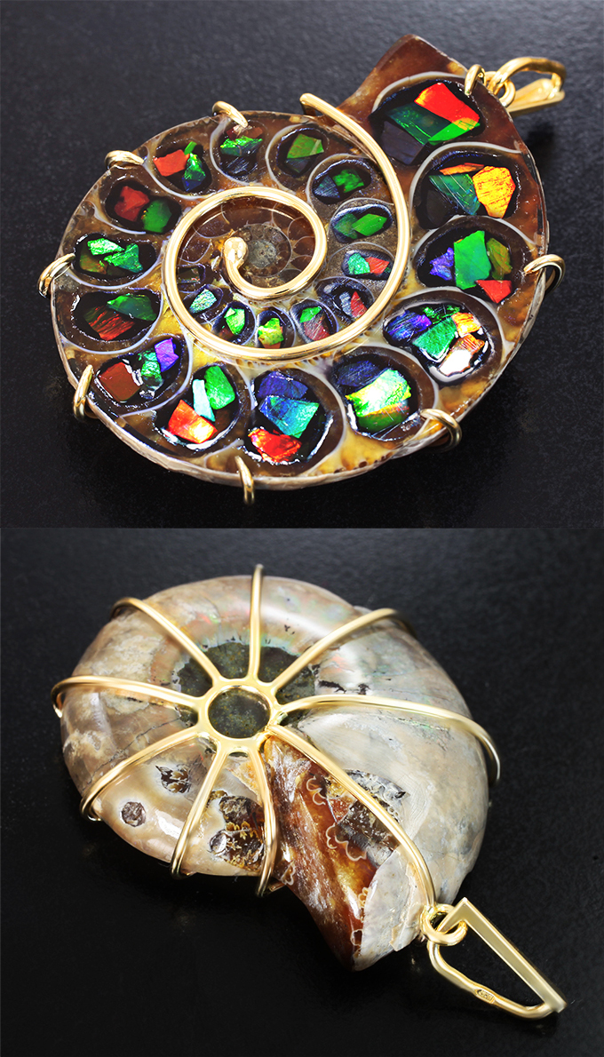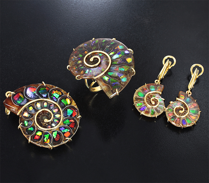 Комплект с аммонитами с аммолитовой мозаикой 178,16 карата