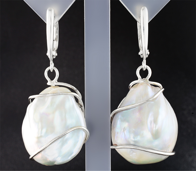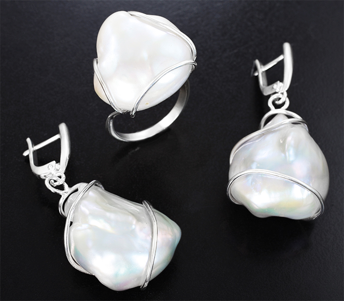 Вашему вниманию предлагается комплект (кольцо + серьги) из стерлингового серебра (925 проба) с жемчугом барокко! Вес комплекта 30,95 г.