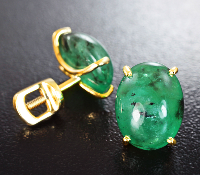 Вашему вниманию предлагаются пусеты из желтого золота 585 пробы с уральскими изумрудами! Площадка пусет 11 х 9 мм. Вес пары 3,31 г. Ниже приводятся ювелирные характеристики вставок.