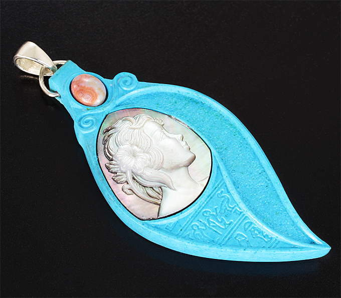 Кулон с камеей-подвеской «Хатхор» из бирюзы с перламутром и яшмой