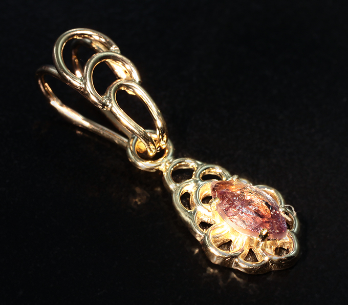 Вашему вниманию предлагается кулон из желтого золота 585 пробы с уральским александритом! При смене освещения, камень меняет цвет с зеленого на пурпурно-розовый. Размеры кулона с петлей 26 х 8 мм. Вес изделия 1,44 г. Ниже приводятся ювелирные характеристики вставки.