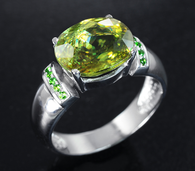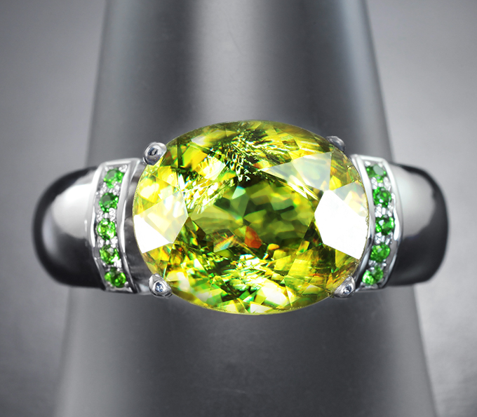 Кольцо cо сфеном 4,23 карата и хромдиопсидами