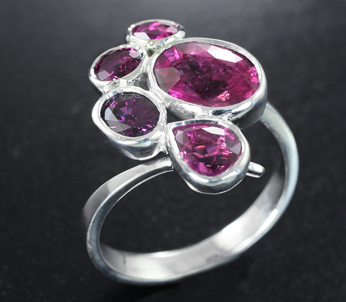 Кольцо c неоново-розовыми сапфирами 4,02 карата и турмалином 1,88 карата