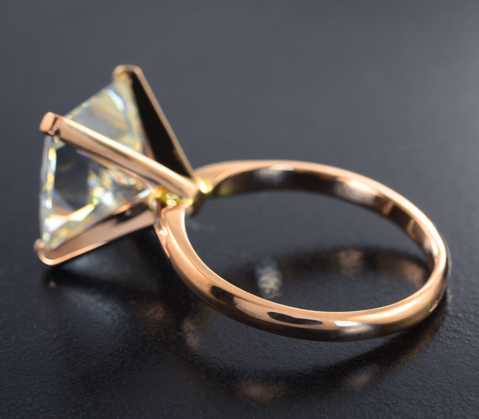 Вашему вниманию предлагается кольцо из красного золота 585 пробы с крупным муассанитом высокой чистоты! Площадка 13 х 13 мм, высота 12 мм. Вес изделия 5,62 г. Размер 18,5. Ниже приводятся ювелирные характеристики вставки.