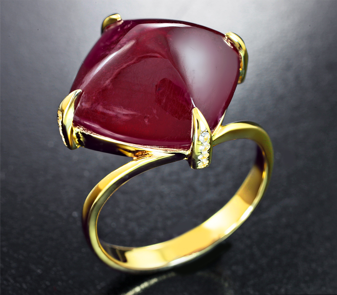 Вашему вниманию предлагается кольцо из желтого золота 585 пробы с крупным рубином и бесцветными цирконами! Диаметр дополнительной инкрустации 1,1 мм. Площадка 21 х 21 мм, высота 10 мм. Вес изделия 9,38 г. Размер 19,5. Ниже приводятся ювелирные характеристики вставки.