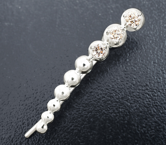 Вашему вниманию предлагается кафф из белого золота 750 пробы с розовыми бриллиантами! Площадка 33 х 5 мм. Вес изделия 1,55 г. Ниже приводятся ювелирные характеристики вставок.