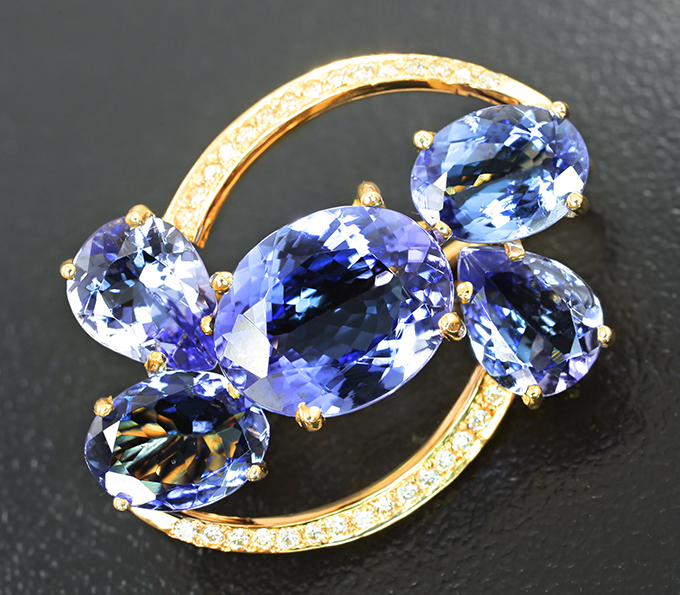 Брошь/кулон с танзанитами 9,21 карата и бриллиантами