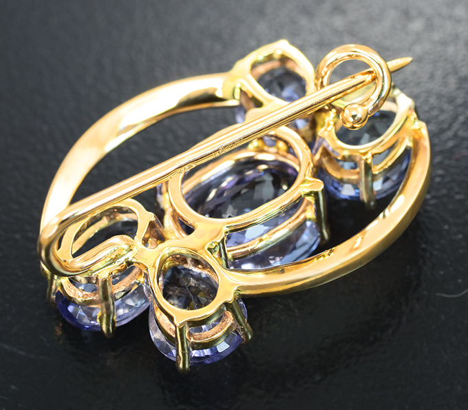 Вашему вниманию предлагается брошь/кулон из желтого золота 585 пробы с танзанитами и бриллиантами! Диаметр дополнительной инкрустации 1,1 мм. Площадка 27 х 21 мм. Вес изделия 5,8 г. Ниже приводятся ювелирные характеристики вставок.