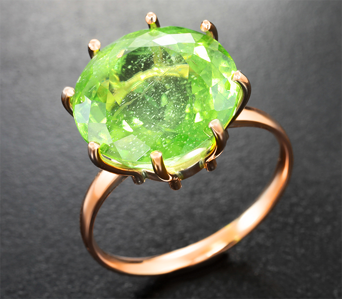 Кольцо с перидотом с включениями рутила 15,3 карата