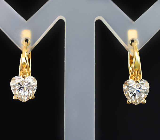 Вашему вниманию предлагаются серьги из желтого золота 585 пробы с муассанитами! Размеры серег с петлей 14 х 7 мм. Вес пары 2,38 г. Ниже приводятся ювелирные характеристики.