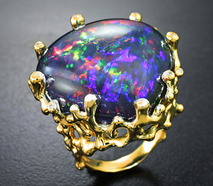 Кольцо с кристаллическим черным опалом 31,32 карата и бриллиантами