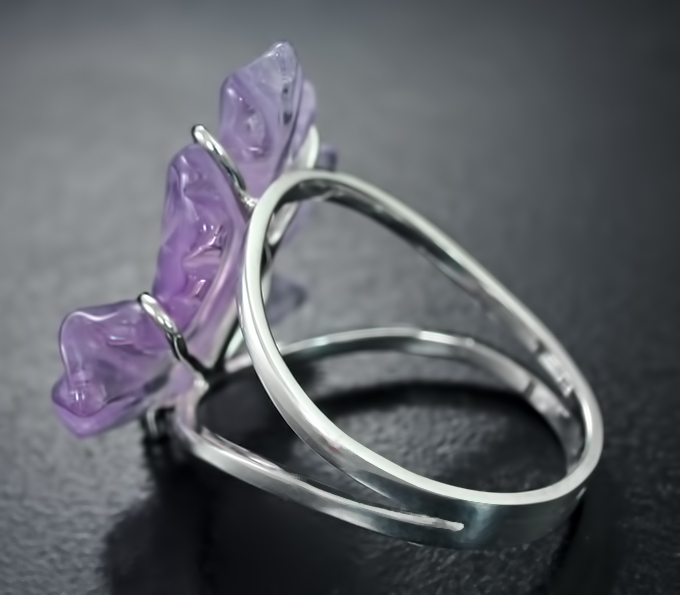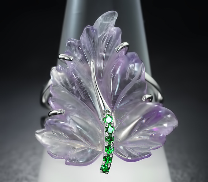Кольцо с резным аметистом 12,18 карата и цаворитами
