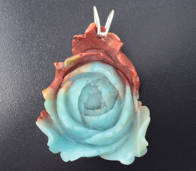 Миниатюра-подвеска «Пион» из цельного полихромного амазонита