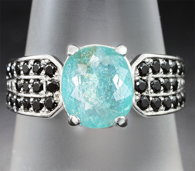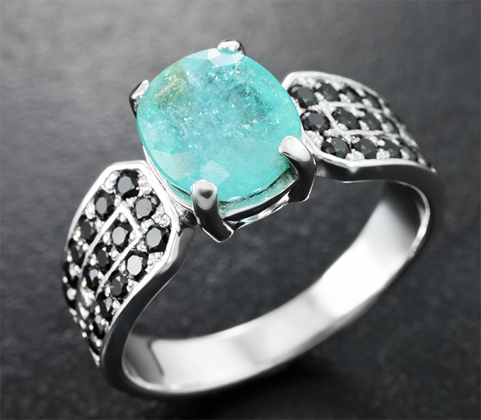 Кольцо с параиба турмалином 1,76 карата и черными шпинелями