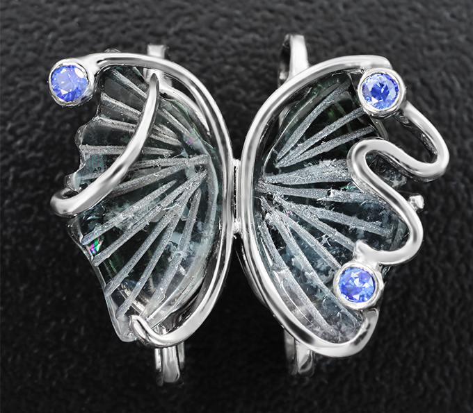 Кулон с резными зелеными турмалинами 2,62 карата и синими сапфирами