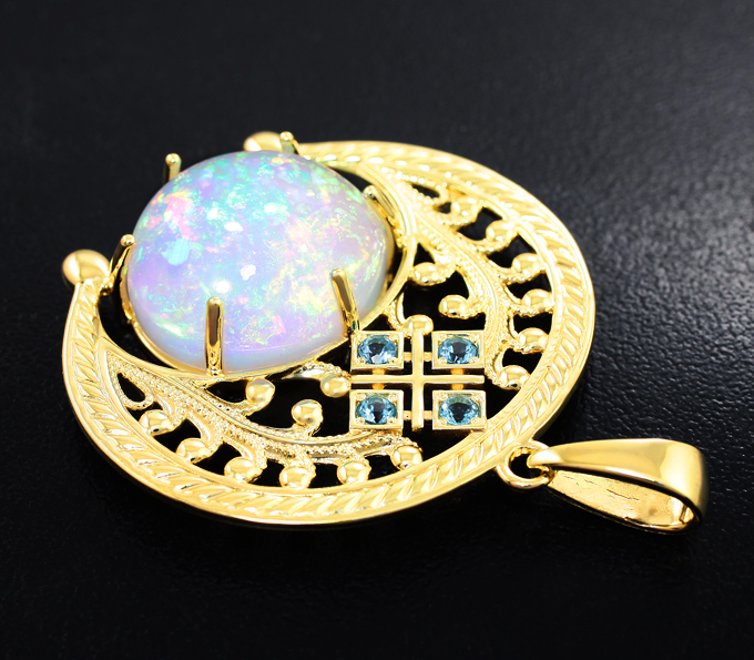 Кулон с кристаллическим эфиопским опалом 16,04 карата и голубыми топазами