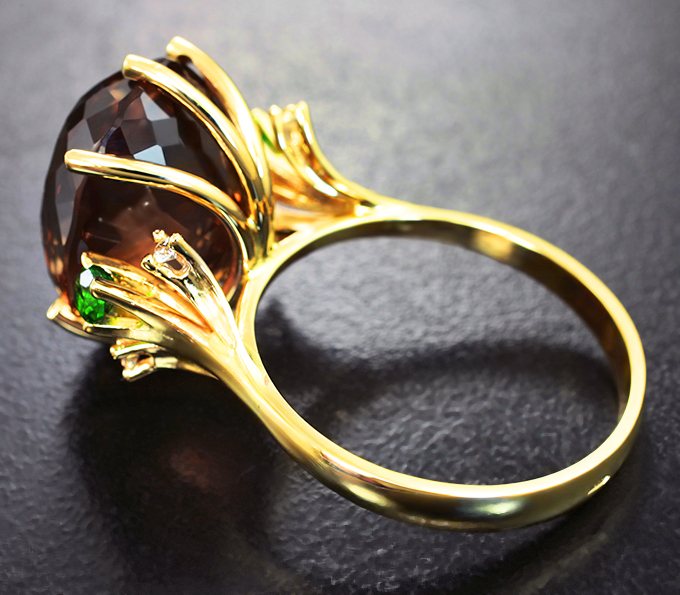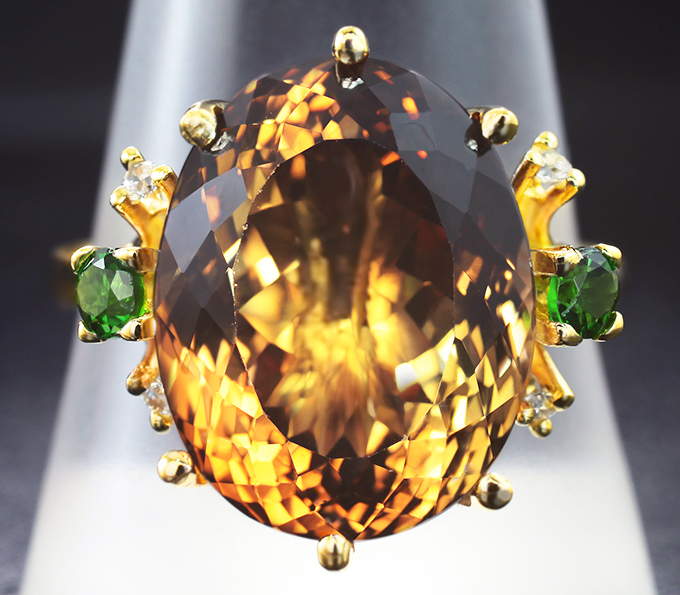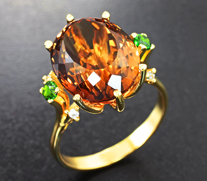 Кольцо с чистейшим империал топазом 16,76 карата, диопсидами и бесцветными цирконами